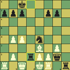 Matten på f1 eller h1 kan inte längre förhindras. Kommentarer: Conny Olsson Själv spelade jag remi som vit mot en av ryssarna medan Anders och Martin förlorade. Conny låg nu riktigt bra till. På 5.5 poäng av 6 låg han ensam tvåa efter ledande GM Einar Gausel från Norge. I rond sju skulle de båda mötas. Skulle Conny som vit kunna upprepa bedriften från förra året och vinna mot en GM? Tyvärr blev det inte så. Conny chansade och spelade g4 i ett tidigt läge. Det skulle han inte gjort. Gausel utnyttjade detta och kunde vinna utan större problem. Anders spelade vit mot Kurt Andersson från SS Allians i ett Tarraschparti. Spänningen uteblev dock när Anders valde att ta remi i ett avgörande läge istället för att, i Petrosians anda, offra kvalitet för löparparet, bonde och initiativ. Själv spelade jag svart mot Arto Satonen från Finland. Jag kom tidigt trångt men min motståndare förhastade sig när han tog en bonde, vilket ledde till att jag kunde tränga in med mitt löparpar. Det ledde så småningom till att jag fick en vunnen ställning med torn och fyra bönder mot löpare, springare och två bönder. Min vana trogen fick jag dock dålig tid och tiden gick ut innan jag lyckats vinna med dam och kung mot springare och kung, med remi som resultat. Den ende som vann i rond sju var Martin. I sista ronden var jag inte i form. Jag spelade dåligt i öppningen, fick en chans att komma in i partiet men satte pjäs (!) och förlorade. Aven Conny förlorade mot den bäste ryssen, trots att han kommit bra i öppningen som svart i Fajarowicz. Martin spelade remi medan Anders till sist lyckades vinna ett parti som hade svängt fram och tillbaka några gånger.