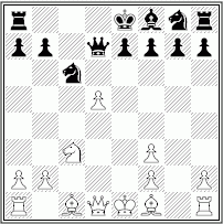 Västgöta Open 2000, rond 1. 1. e4 c5 2. c3 Sc6 3. d4 cxd4 4. cxd4 d5 5. exd5 Dxd5 6. Sf3 Lg4 7. Sc3 Dd7?? 8. d5 Lxf3 9. gxf3 Uppg.