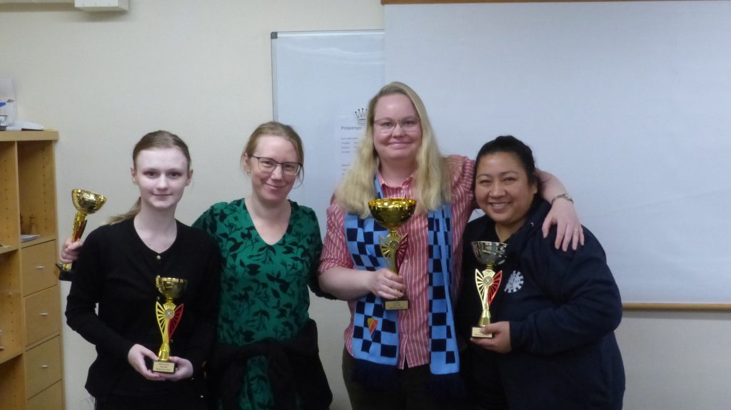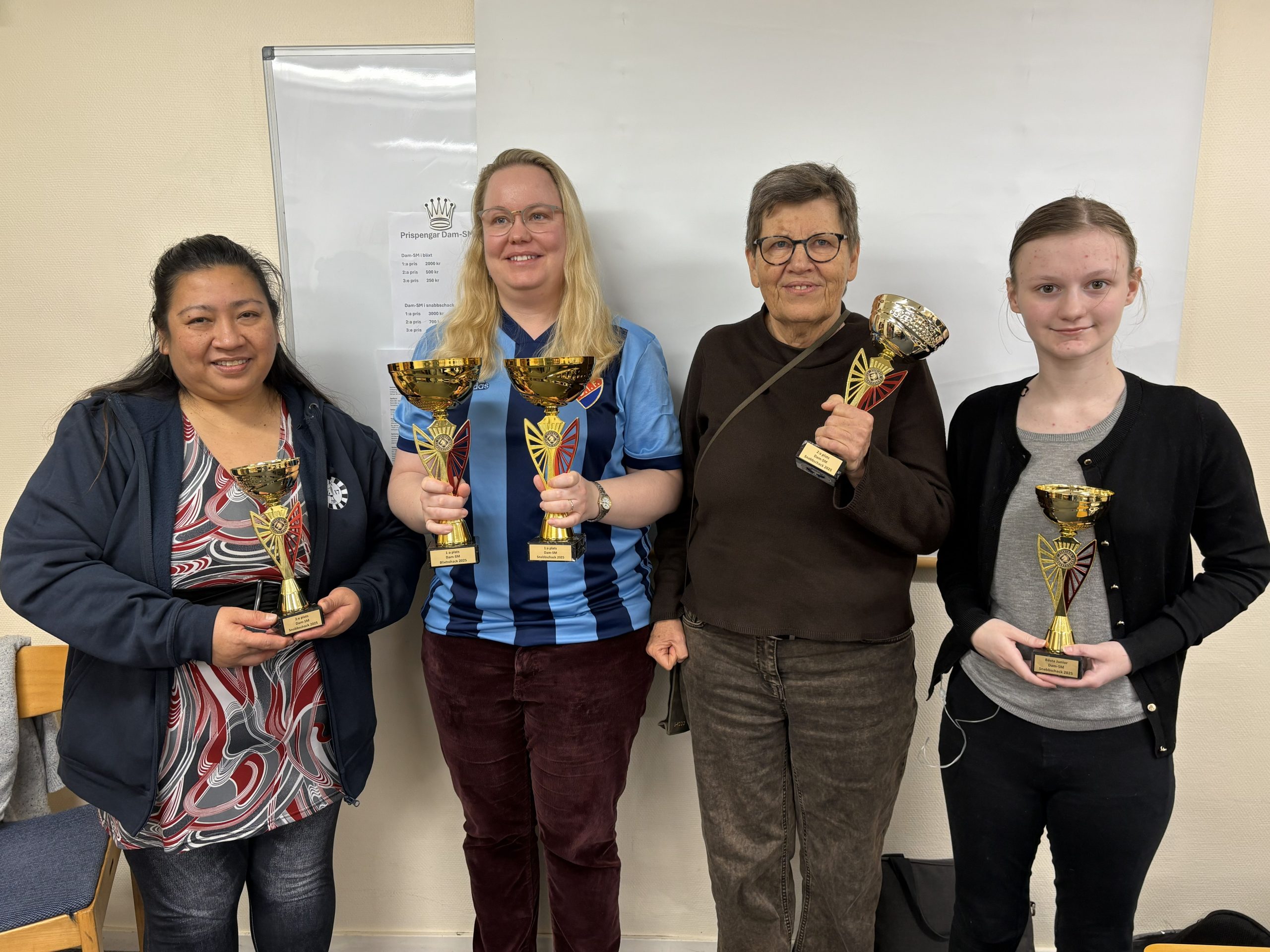 Pristagarna i snabbschacket: Cristine, Emilia, Eva och Josefina Dam-SM på klubben
